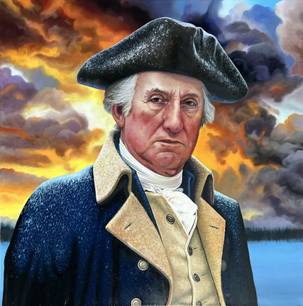 In traditional portraits—from Gilbert Stuart’s composed statesman to Emanuel Leutze’s heroic allegory—Washington appears almost mythological: elevated, timeless, removed from physical hardship. I wanted to paint something different. I wanted to paint the human Washington.